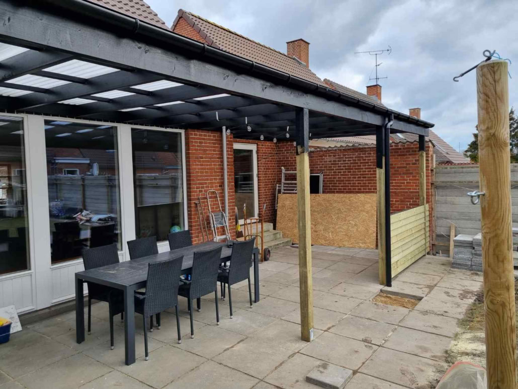 Vi er glade for at præsentere vores seneste halvtagprojekt, der er blevet opført til en tilfreds kunde! Et halvtag er den perfekte måde at skabe skygge og beskyttelse på i dit udendørs rum.