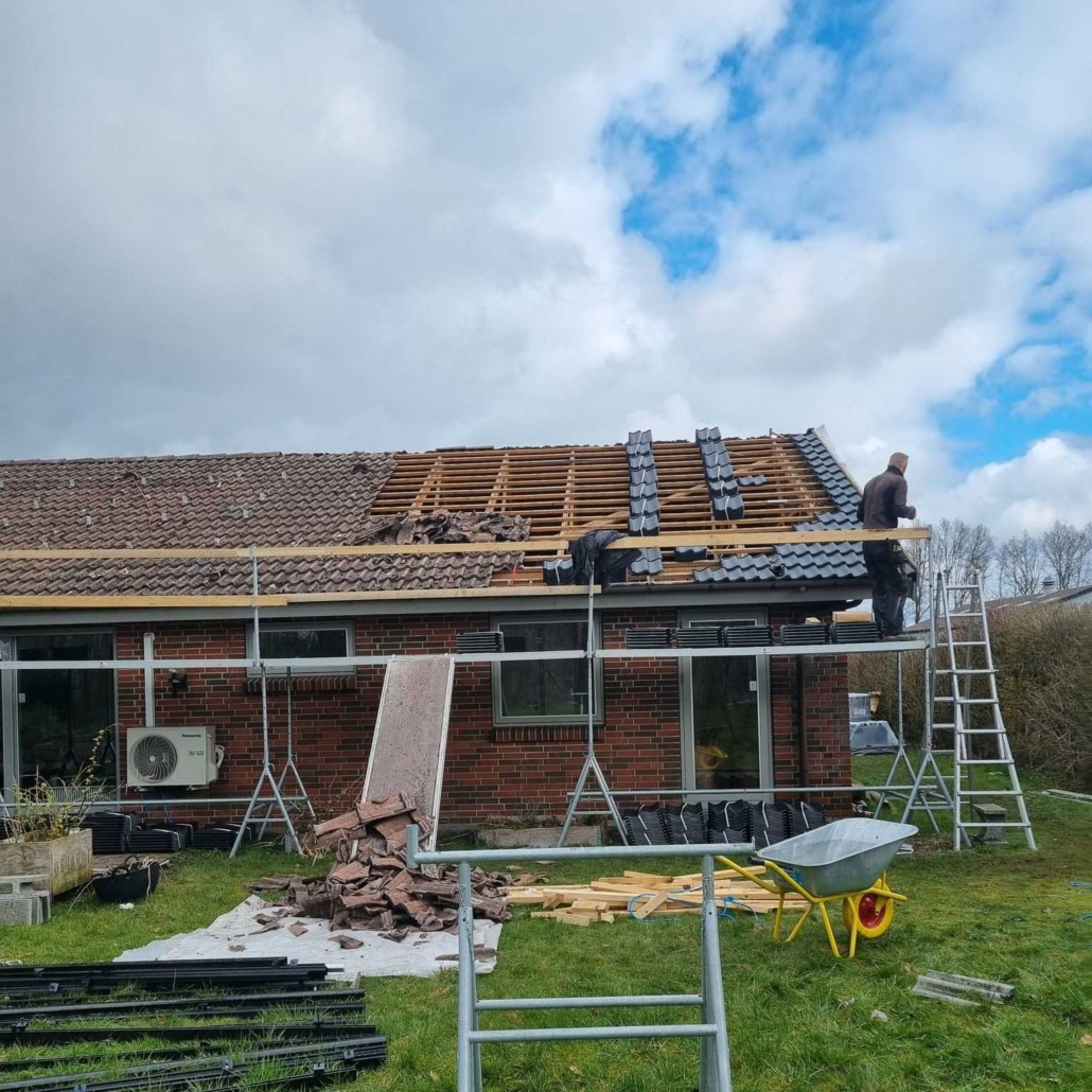 En kunde stod med et akut problem med vandindtrængen på taget – og vi sprang hurtigt til! Vi har udskiftet en tagside med nye, flotte tegl, der både løser problemet og sikrer et stærkt og tæt tag fremover. Kundens ønske var en løsning, der var hurtig, budgetvenlig og samtidig gjorde taget klar til solceller i fremtiden.